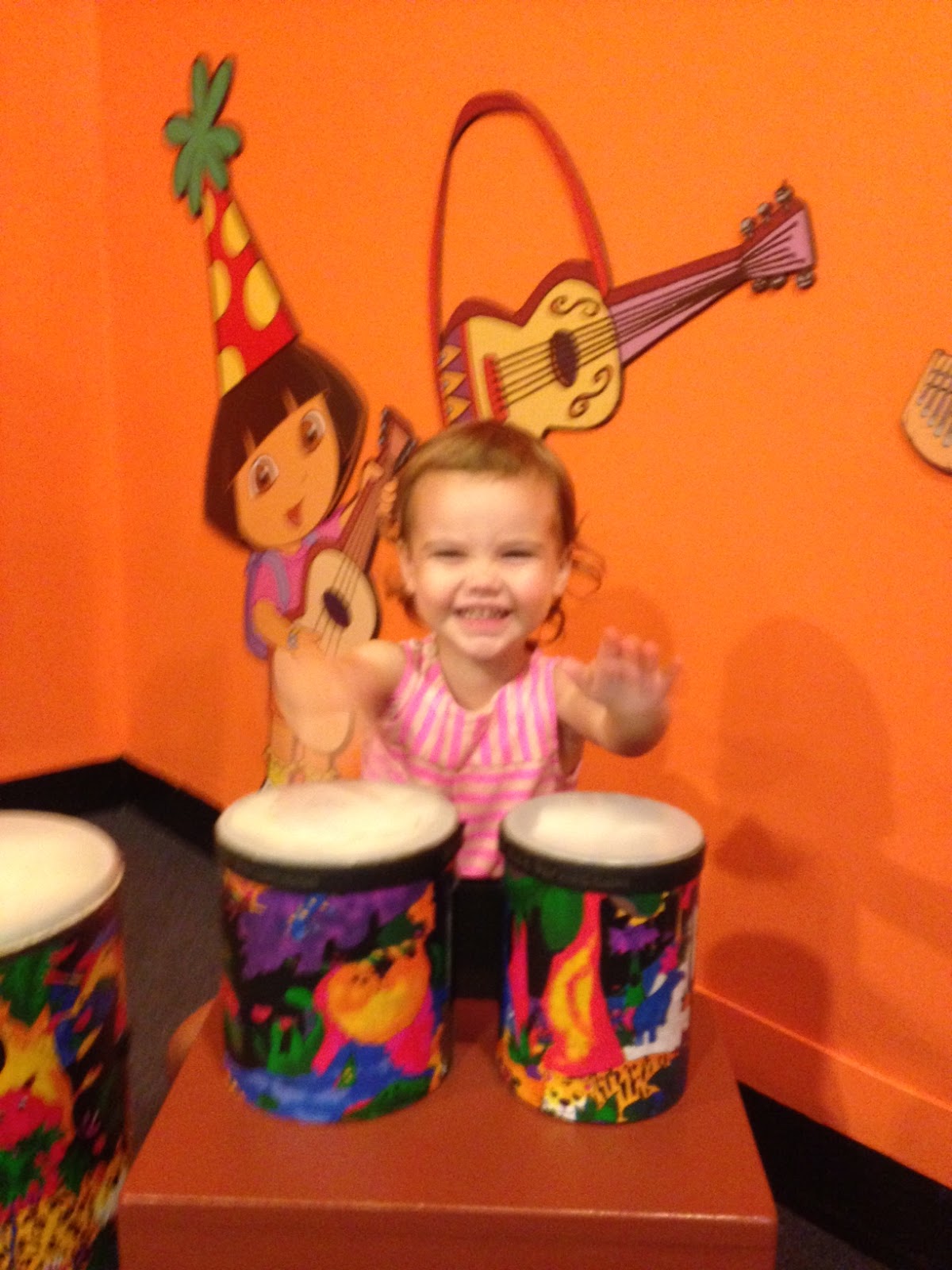 We have been in Manhattan for a week now. You have danced on the big piano 4 different times and you think it's so fun. Every time someone comes to visit we walk them over there and you show them how it's done. Grandma and Grandpa came yesterday and you danced your little toe all over the piano. On Tuesday we went to the Children's museum of Manhattan and they had an entire exhibit devoted to Dora and Diego and you were so excited. You kept playing the Diego theme song and marching around. You went in Dora's living room and played on "baby bongo" (who has an entire episode devoted to himself, which you always request to watch after your nap). You went in Dora's room and laid right down on her big blue bed, oh, you were in heaven.